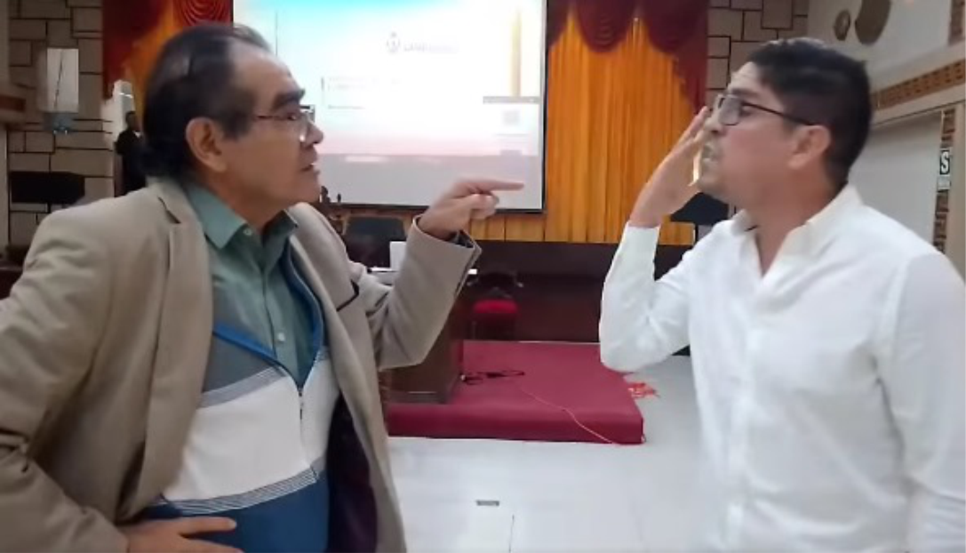 Un triste y bochornoso espectáculo ―que se está fea haciendo costumbre― protagonizaron los concejeros regionales, Juan Pablo Horna Santa Cruz (APP) y Ricardo Lara Doig (FP), en la sesión de Consejo Regional de ayer 7 de agosto del 2025, que se desarrollaba en el auditorio del Gobierno Regional de Lambayeque.