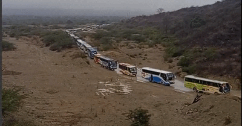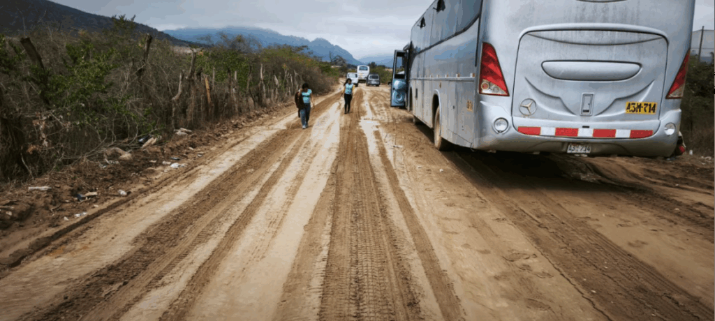 “Salimos a las cuatro de la mañana y no avanzamos ni un kilómetro”, cuenta un chofer en uno de los video registrado esa mañana. En las imágenes —verificadas por este medio— se observa una fila interminable de vehículos detenidos, una vía sin drenaje y ningún rastro de maquinaria o mantenimiento.