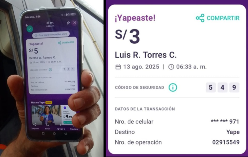 El dinero recaudado por concepto de peaje no ingresa a las arcas comunales ni se deposita en cuentas institucionales. Transportistas y comuneros han solicitado reiteradamente balances y rendiciones de cuentas sin obtener respuesta. Algunos muestran en sus celulares los comprobantes de pago realizados por Yape a nombre de “Luis R. Torres C.”  y otros “Bertha A. Ramos O.”