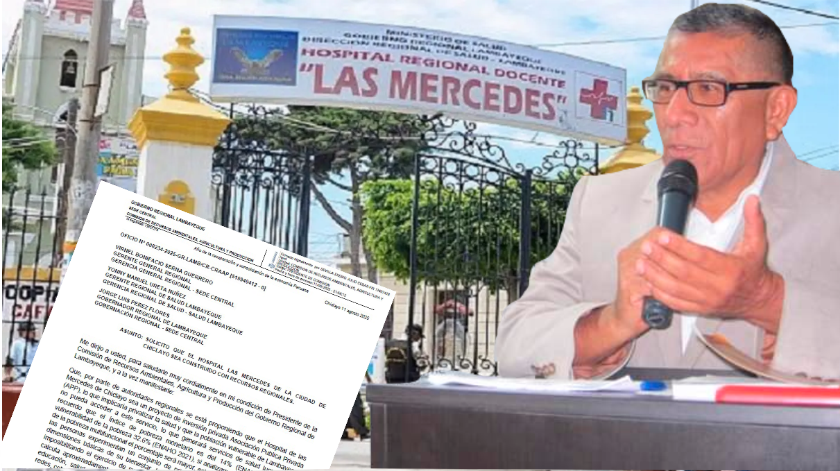 Para Sevilla, el riesgo es claro: “privatizar la salud” y afectar el derecho de los sectores más pobres a recibir atención gratuita. Así se lee en el Oficio N° 000234-2025-GR.LAMB/CR-CRAAP [515940412 – 0], del 11 agosto 2025.